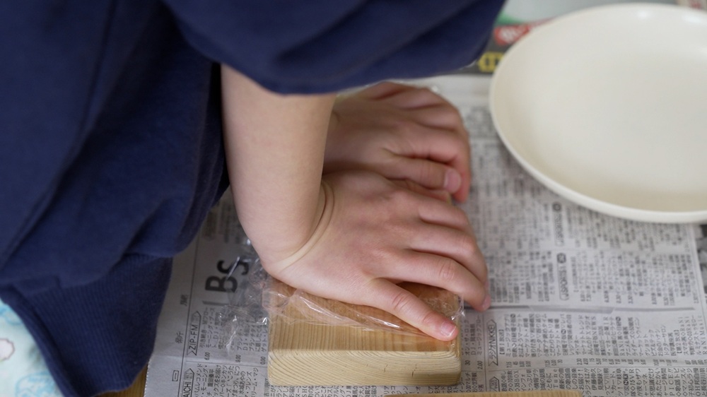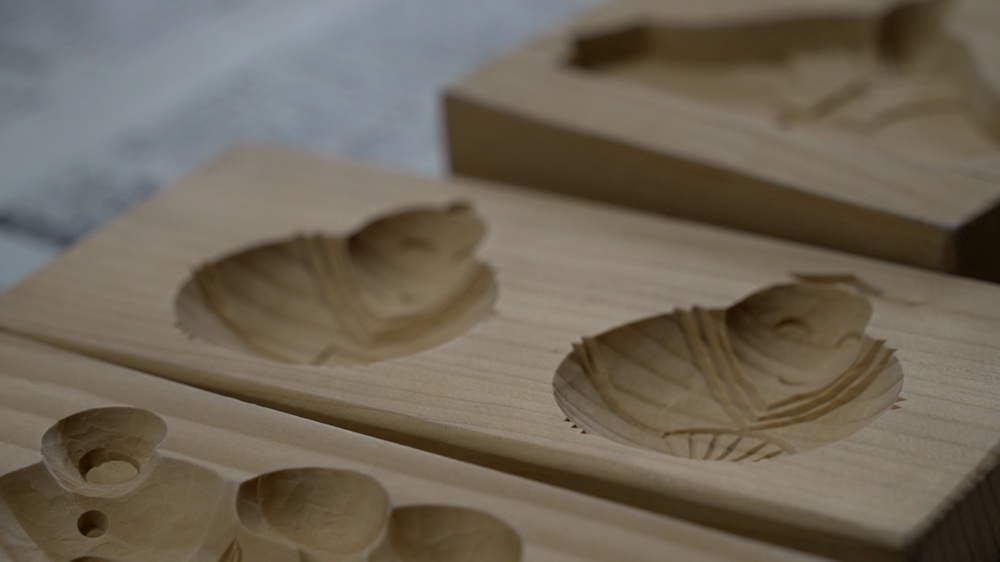 練った米粉をおこしもの専用の木型に入れます。