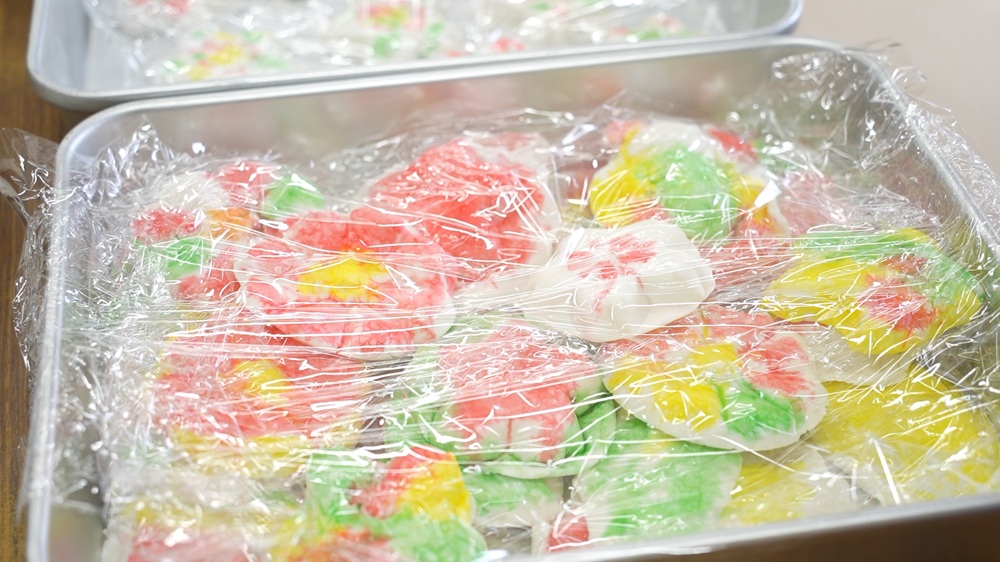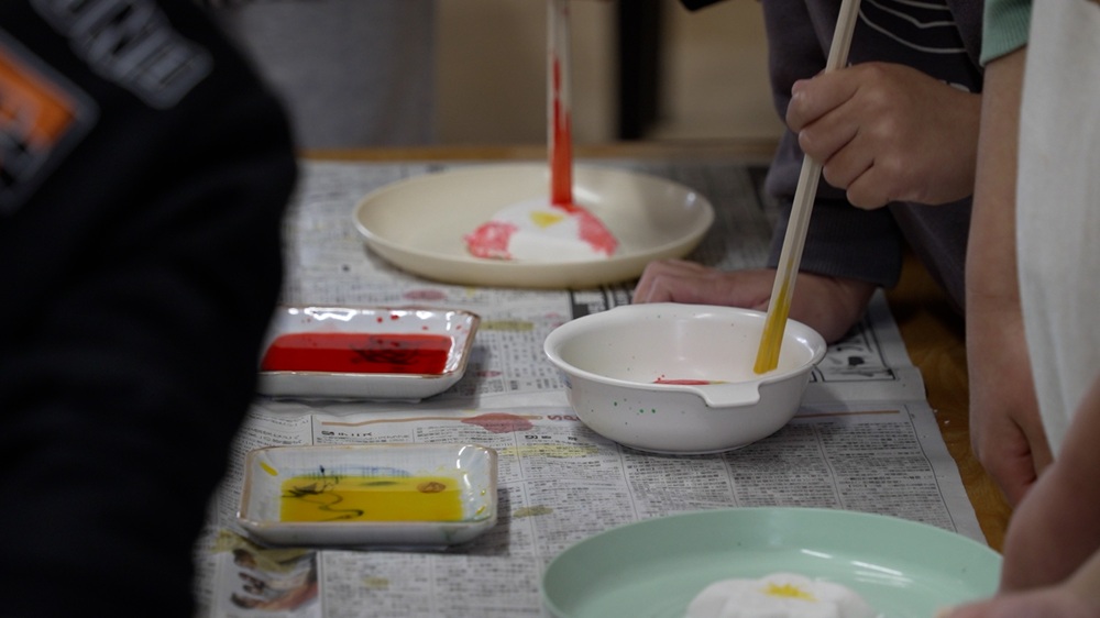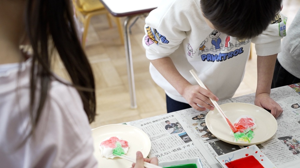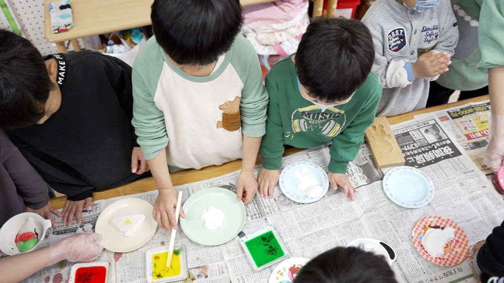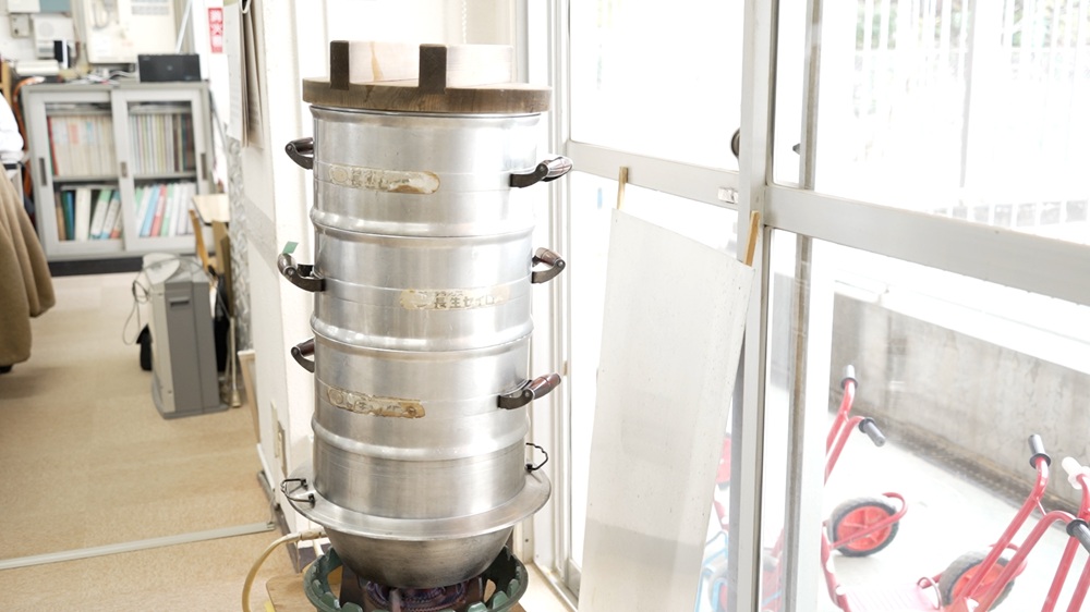 思い思いの色を塗ったら、せいろで蒸します。